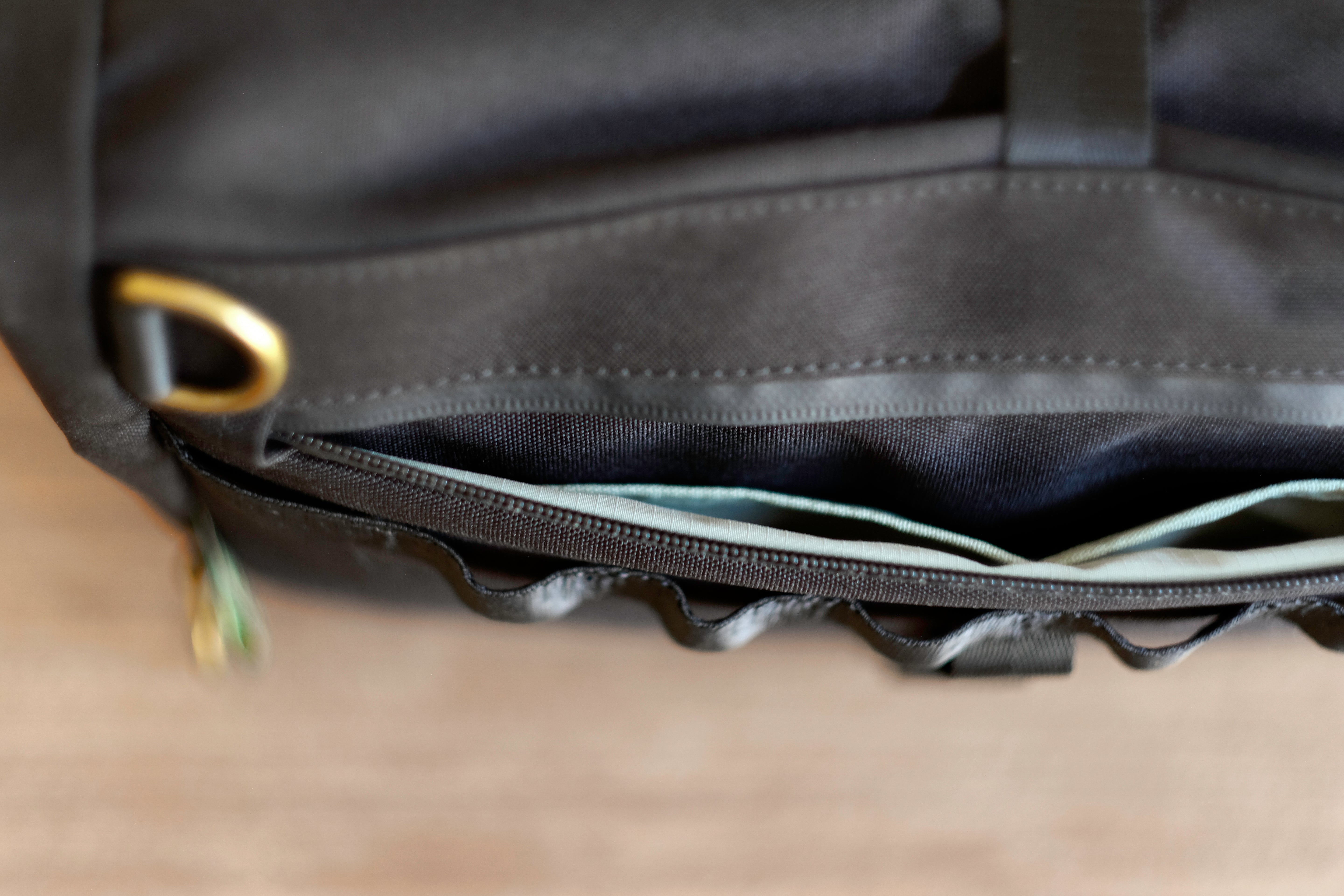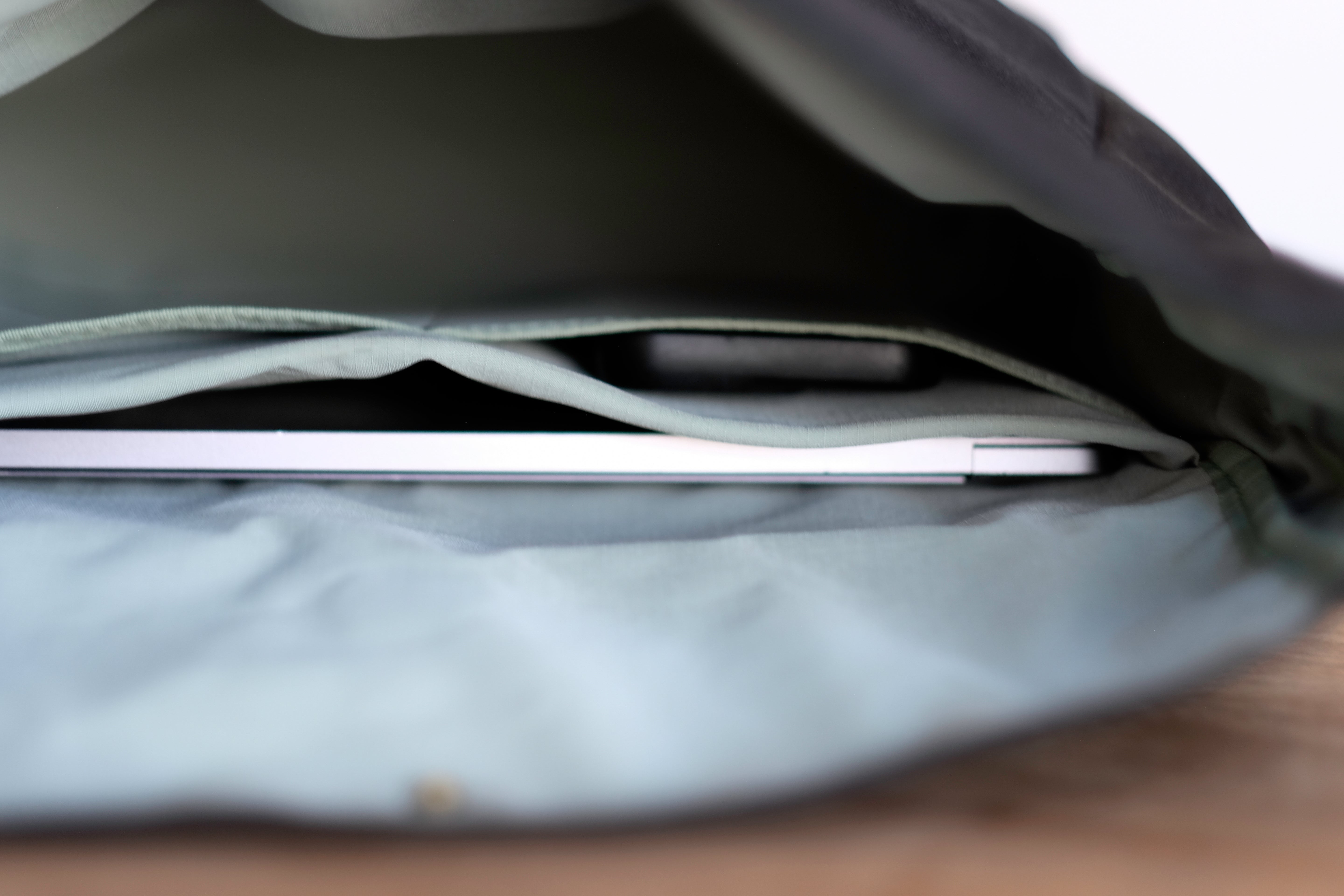 - Water resistant, recycled polyester ripstop lining (light eucalyptus)