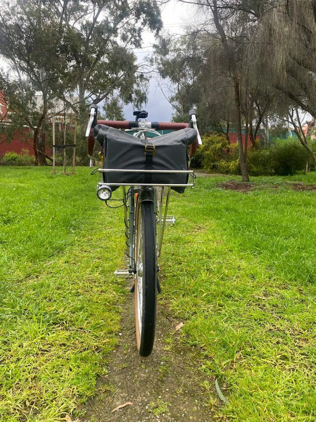 Nice bag that sits on top of my front rack. Even though it was made for a wald basket, I use the webbing on the underside to zip tie it to the pizza style rack.